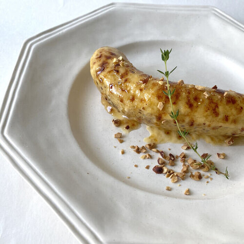 バナナに自家製のカスタードクリームをのせて焼き上げました。